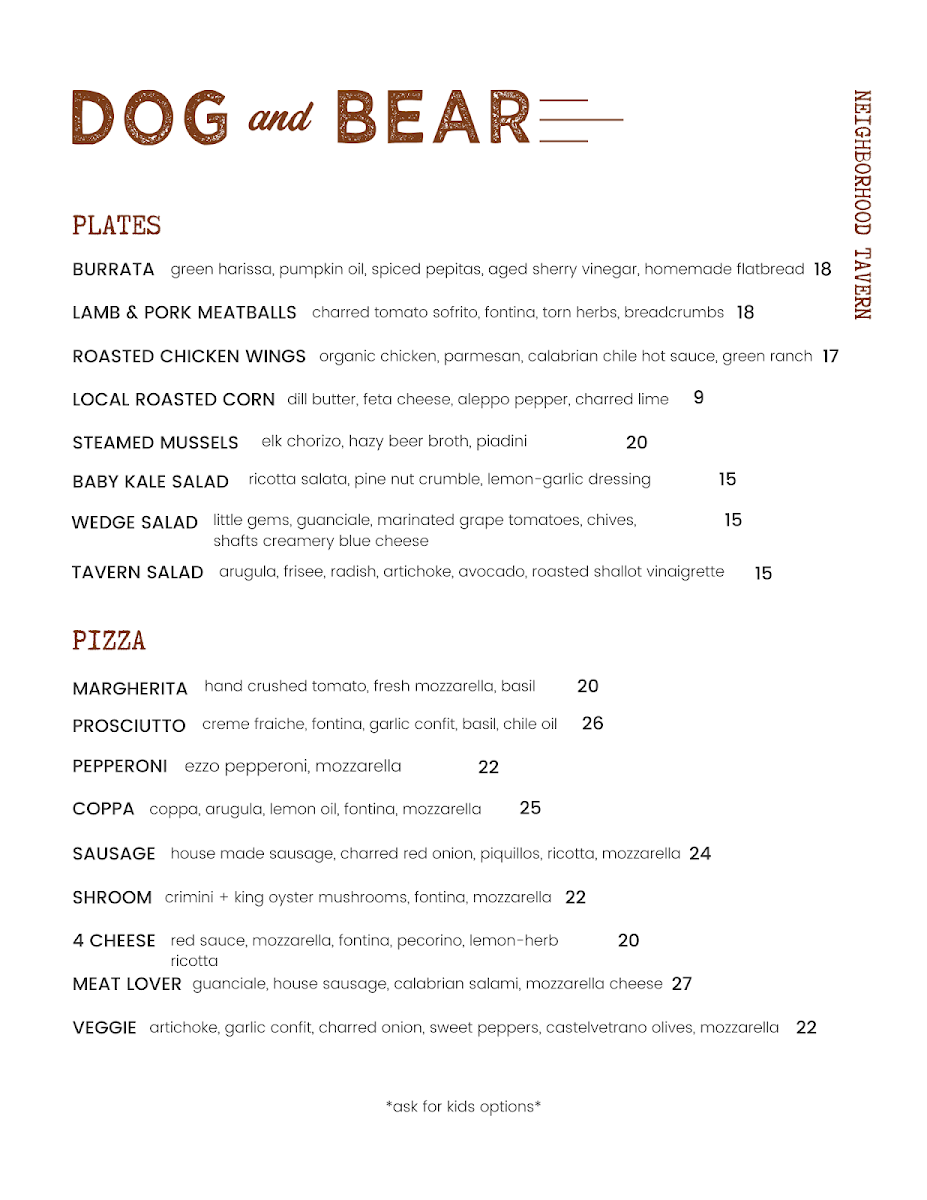 The Dog & Bear Tavern specializes in a delightful mix of pub-style cuisine, famed for its wood-fired pizzas that are an explosion of flavor and creativity. Picture the Truffle Coppa Pizza: each slice boasts a rich, earthy truffle essence, combined beautifully with savory coppa and complemented by a crunchy, perfectly baked crust. Or perhaps you find yourself yearning for their signature Pig & Peach Pizza, which tantalizes the palate with a harmonious blend of sweet and savory, sure to leave you raving long after the last bite.